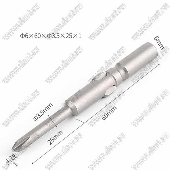 Каталог > Приборы, инструмент, оборудование, материалы > Инструменты > Отвертки, ключи и принадлежности > Биты для шуруповертов и электрических отверток > Ф6x60xФ3.5x25xРН1