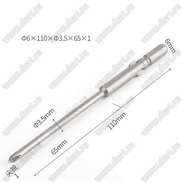 Каталог > Приборы, инструмент, оборудование, материалы > Инструменты > Отвертки, ключи и принадлежности > Биты для шуруповертов и электрических отверток > Ф6x110xФ3.5x65xРН1