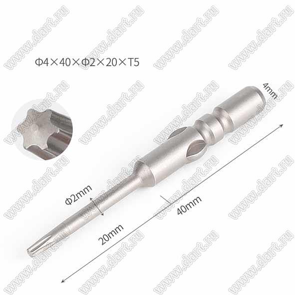 Каталог > Приборы, инструмент, оборудование, материалы > Инструменты > Отвертки, ключи и принадлежности > Биты для шуруповертов и электрических отверток > Ф4x40xФ2.0x20-T5