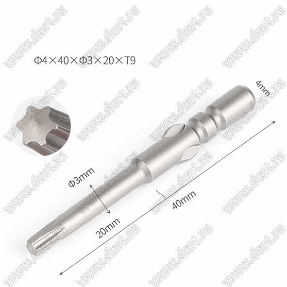 Каталог > Приборы, инструмент, оборудование, материалы > Инструменты > Отвертки, ключи и принадлежности > Биты для шуруповертов и электрических отверток > Ф4x40xФ3.0x20-T9
