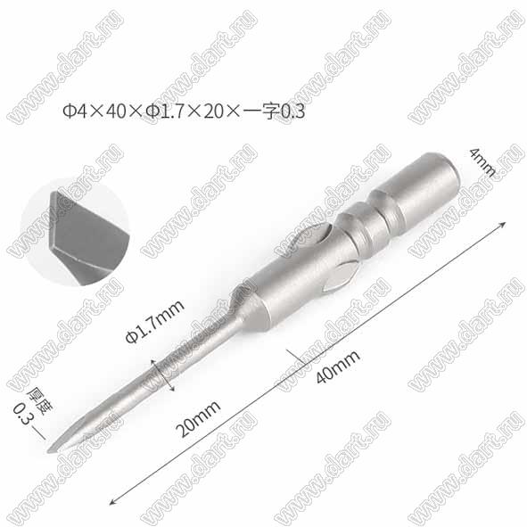 Каталог > Приборы, инструмент, оборудование, материалы > Инструменты > Отвертки, ключи и принадлежности > Биты для шуруповертов и электрических отверток > Ф4x40xФ1.7x20-0.3