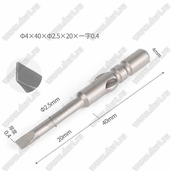 Каталог > Приборы, инструмент, оборудование, материалы > Инструменты > Отвертки, ключи и принадлежности > Биты для шуруповертов и электрических отверток > Ф4x40xФ2.5x20-0.4