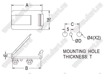 Каталог > Фурнитура для электронных устройств > Крепеж проводов и кабелей > Зажимы для плоского кабеля > с фиксацией в панель на защелке > MIBB серия > MIBB-5