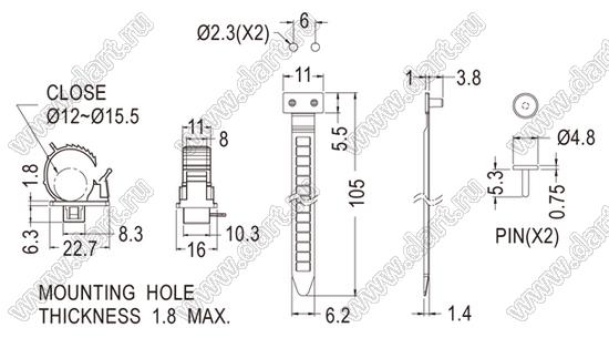 Каталог > Фурнитура для электронных устройств > Крепеж проводов и кабелей > Зажимы проводов с фиксацией в панель на защелках > SWPL серия, тип 2 > SWPL-94