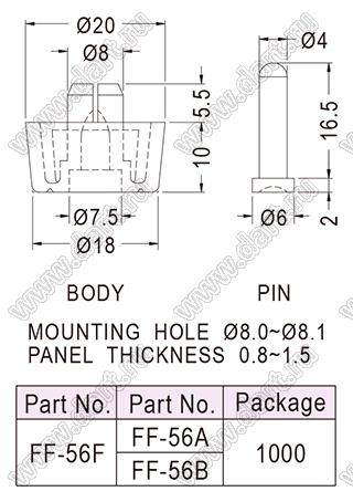 Каталог > Фурнитура для электронных устройств > Ножки приборные > Круглые > FF серия: ножки приборные с распорной вставкой > FF-56F