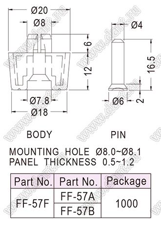 Каталог > Фурнитура для электронных устройств > Ножки приборные > Круглые > FF серия: ножки приборные с распорной вставкой > FF-57F