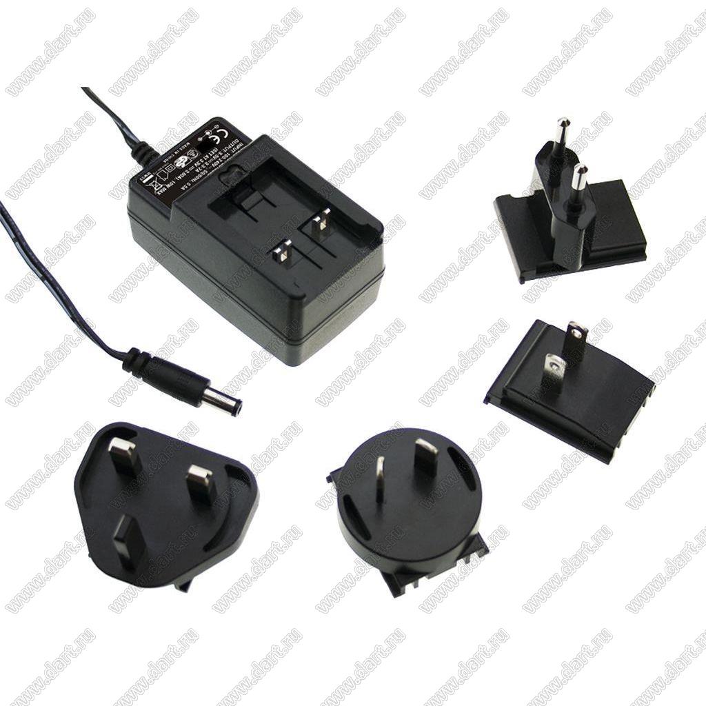 Адаптер питания с набором сетевых вилок; Uвх=90-264В (перем.); Uвых=12В (пост.); Iвых=1А; длина провода 1,5м; штекер DC 5,5х2,1мм