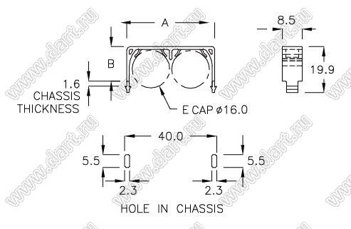Каталог > Фурнитура для электронных устройств > Держатели и изоляторы компонентов > Держатели и изоляторы конденсаторов > Прочее > CWD-16