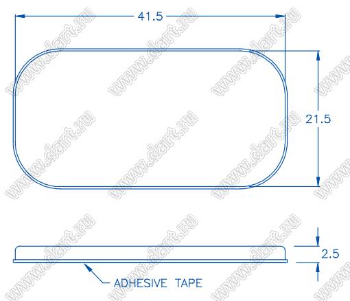 ножка приборная; A=41,5мм; B=22,1мм; C=2,5мм; силиконовая резина; черный