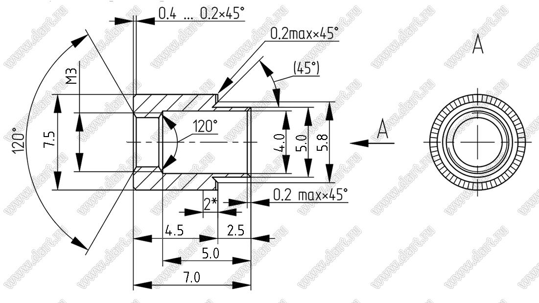 Каталог > Фурнитура для электронных устройств > Крепеж металлический (метизы) и пластиковый > Втулки резьбовые развальцовочные (бонки) > БА8.226.327-03 (ЮПИЯ.713361.006-03