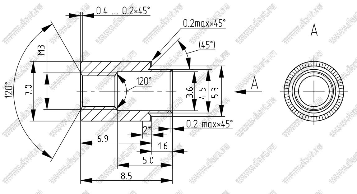 Каталог > Фурнитура для электронных устройств > Крепеж металлический (метизы) и пластиковый > Втулки резьбовые развальцовочные (бонки) > БА8.226.331-01 (ЮПИЯ.713361.010-01