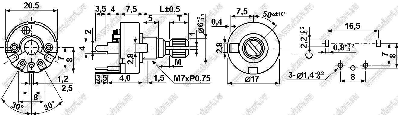 Каталог > Электронные компоненты, радиодетали > Резисторы > Резисторы переменные (потенциометры) > Роторные > 17 мм > RV17NP1-20KQ-B100K (RV17-S-K4-A100K-20KQ)