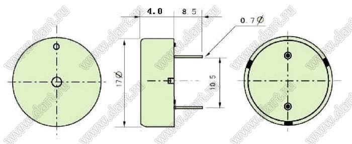 Каталог > Электронные компоненты, радиодетали > Излучатели звука > Излучатели звука - Пьезокерамические гудки / зуммеры > Серия BLXH > BLXH-1704-RN