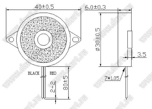 Каталог > Электронные компоненты, радиодетали > Излучатели звука > Излучатели звука - Пьезокерамические гудки / зуммеры > Серия BLXH > BLXH-3040