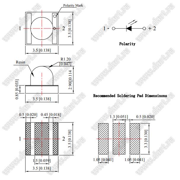 Светодиод инфракрасный SMD; инфракрасный; 850нм; корпус 3535; P=160мВт; 1,4…2,0V; 60мКд; 60°