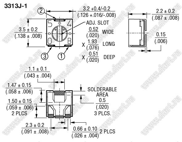 Каталог > Электронные компоненты, радиодетали > Резисторы > Резисторы подстроечные > Углеродные подстроечные потенциометры > 3313 серия > 3313J-1-500E
