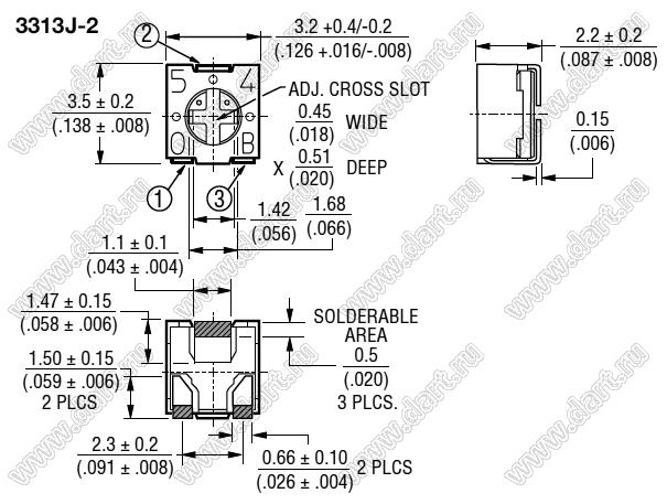 Каталог > Электронные компоненты, радиодетали > Резисторы > Резисторы подстроечные > Углеродные подстроечные потенциометры > 3313 серия > 3313X-2-502E