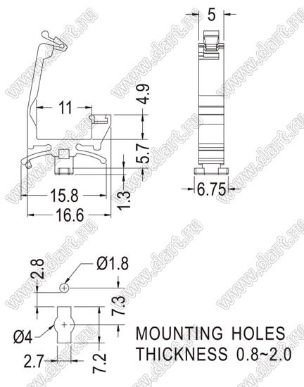 Каталог > Фурнитура для электронных устройств > Крепеж проводов и кабелей > Зажимы проводов с фиксацией в панель на защелках > CHK серия > CHKA-1
