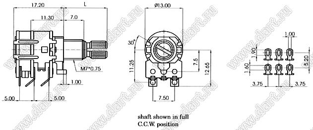 Каталог > Электронные компоненты, радиодетали > Резисторы > Резисторы переменные (потенциометры) > Роторные > 12 мм > R121SG-5B1-B332-0G02