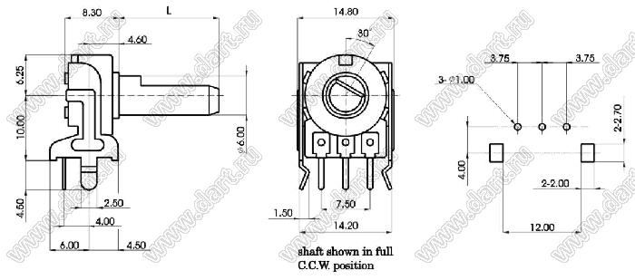 Каталог > Электронные компоненты, радиодетали > Резисторы > Резисторы переменные (потенциометры) > Роторные > 12 мм > R1216N-YA2-B204