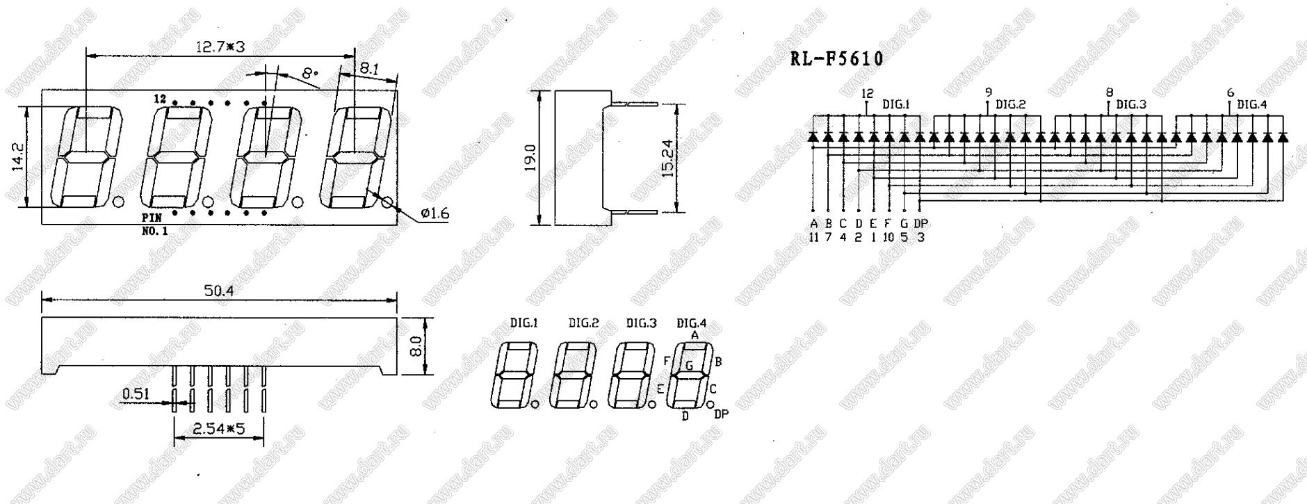 Каталог > Оптоэлектроника и индикация > Индикаторы светодиодные (сегментные дисплеи, матрицы, шкалы, светящиеся поля) > Цифровые и цифро-буквенные cветодиодные сегментные индикаторы (дисплеи) > 4-разрядные сегментные индикаторы > 4-разр. 0.39 дюйм. 7-сегм. 3493 серия > RL-F5610SABW/D15 (CC56-12SRWA)