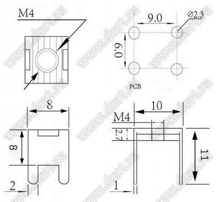 Каталог > Фурнитура для электронных устройств > Терминалы для печатных плат > Терминалы винтовые для пайки в печатную плату > KXB-304-M4