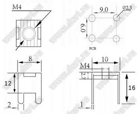 Каталог > Фурнитура для электронных устройств > Терминалы для печатных плат > Терминалы винтовые для пайки в печатную плату > KXB-302-M4