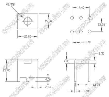 Каталог > Фурнитура для электронных устройств > Терминалы для печатных плат > Терминалы винтовые для пайки в печатную плату > KXB-613-M6