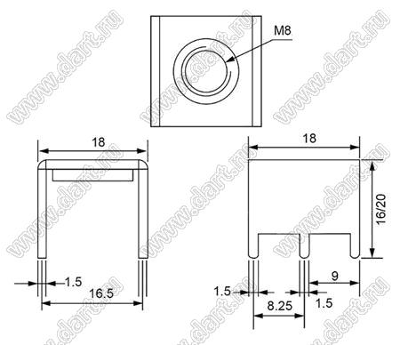 Размеры: 18,0x18,0x16,0 мм