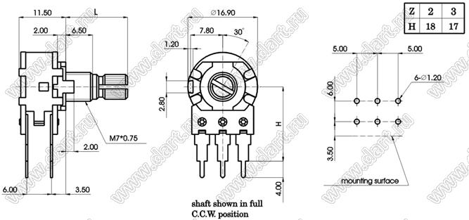 Каталог > Электронные компоненты, радиодетали > Резисторы > Резисторы переменные (потенциометры) > Роторные > 16 мм > R1610G-NA8-B503