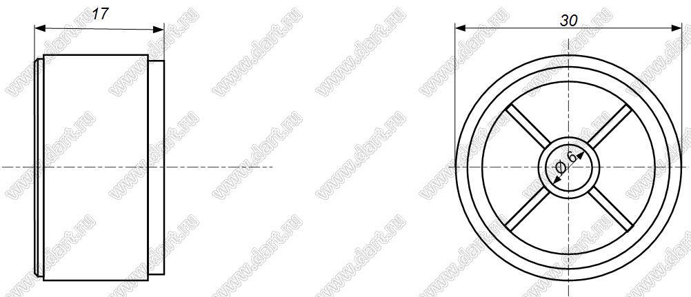Каталог > Фурнитура для электронных устройств > Ручки приборные регулировочные > Ручки настройки > Ручки регулировочные металлические > B138 серия > B138-30-17-6-B-Bф (VA 30x17)