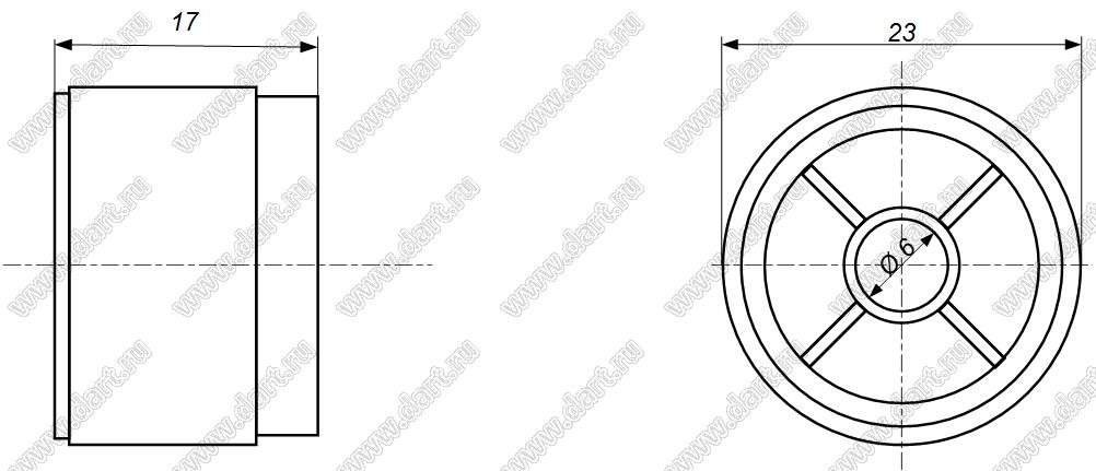Каталог > Фурнитура для электронных устройств > Ручки приборные регулировочные > Ручки настройки > Ручки регулировочные металлические > B138 серия > B138-23-17-6-B-Bф (VA 23x17) (A23x17)