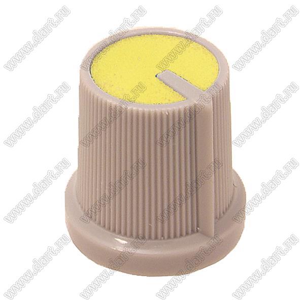 Каталог > Фурнитура для электронных устройств > Ручки приборные регулировочные > Ручки настройки > Ручки регулировочные пластиковые > B259 серия > B259-15-15-6-B-GrY (ZKRN D=15-1) Grey Yellow