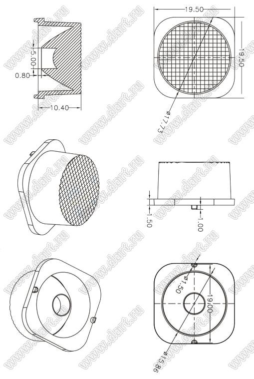 линза для светодиода; 19,5*19,5*10,4мм; 20*45°; PMMA
