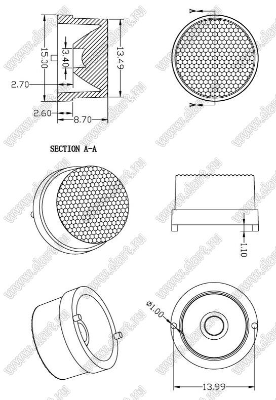 Каталог > Оптоэлектроника и индикация > Линзы и рефлекторы для светодиодов > Прочее > ILENS4-S15-B45-NH