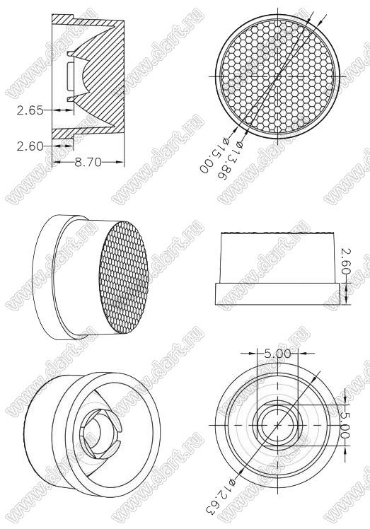 Каталог > Оптоэлектроника и индикация > Линзы и рефлекторы для светодиодов > Прочее > ILENS5-S15-40-NH