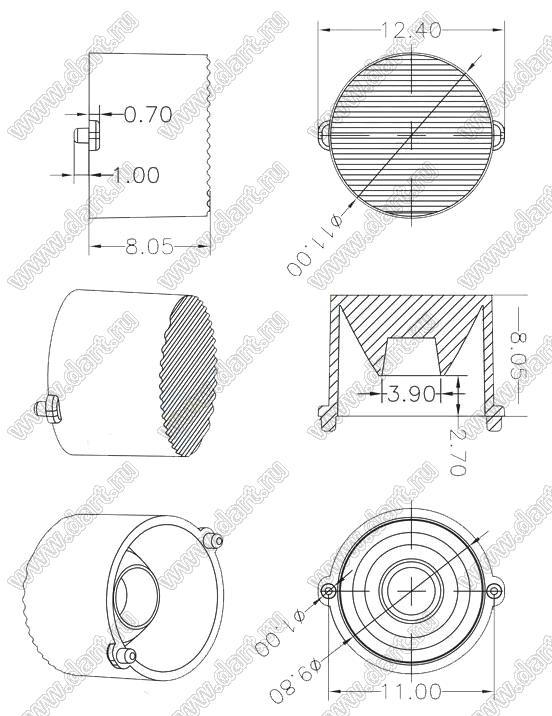 ILENS11-CON11-3065-N линза для светодиода; D11*8,05мм; 30*65°; PMMA   ILENS11-CON11-3065-N