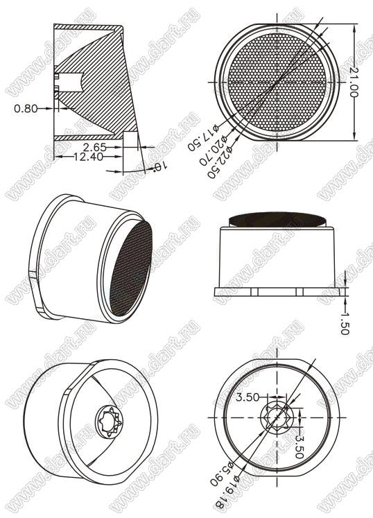 линза для светодиода; D22,5*12,4мм; Asymmetric 25°; PMMA
