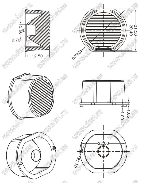 ILENS15-S24-1070-NH линза для светодиода; D24,0*12,5мм; 10*70°; PMMA   ILENS15-S24-1070-NH