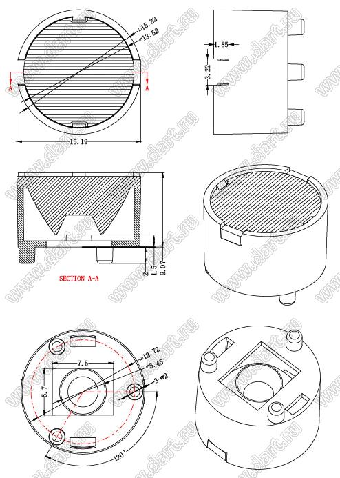 линза для светодиода; D15,22*11,07мм; 20*65°; PMMA