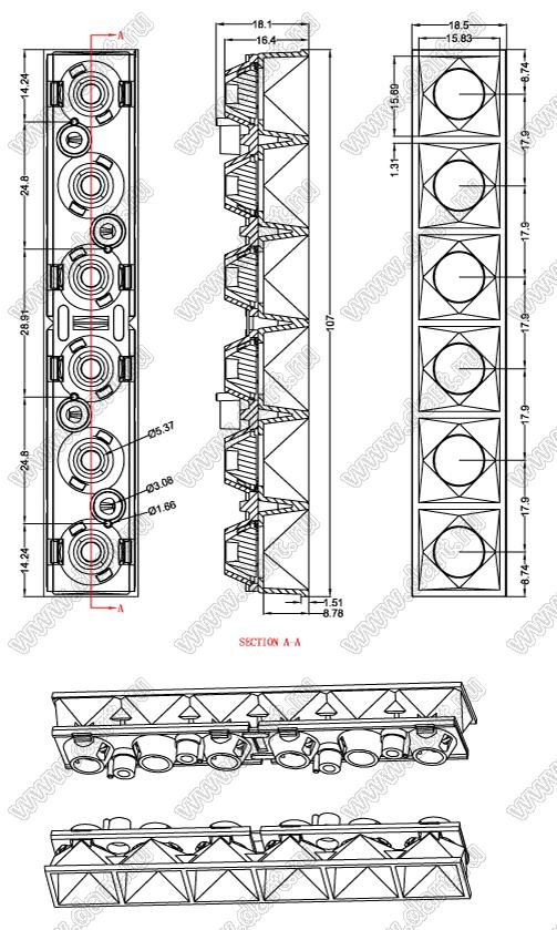 линза для светодиода; 107,00*18,50мм; 50°; PMMA/PC