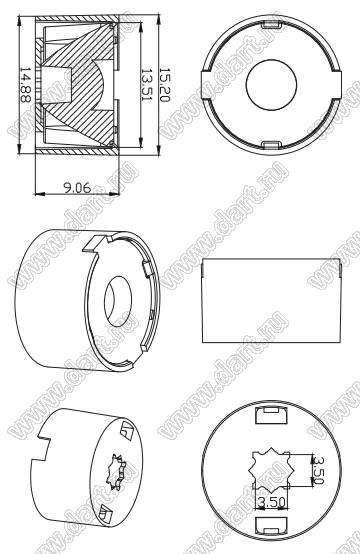 ILENS26-S14-15-H-67M2-3535 линза для светодиода; D15,20*9,06мм; 15°; PMMA   ILENS26-S14-15-H-67M2-3535
