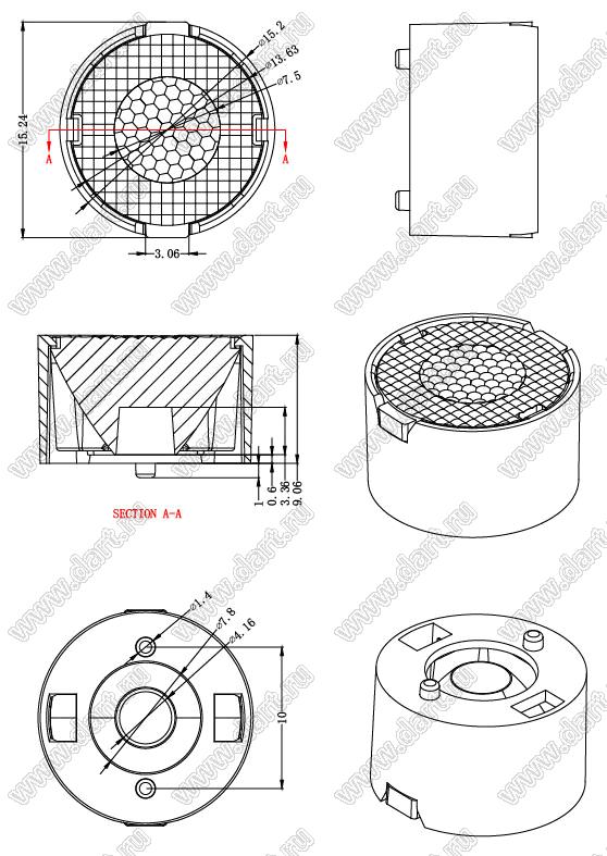 линза для светодиода; D15,20*10,06мм; 18*20°; PMMA