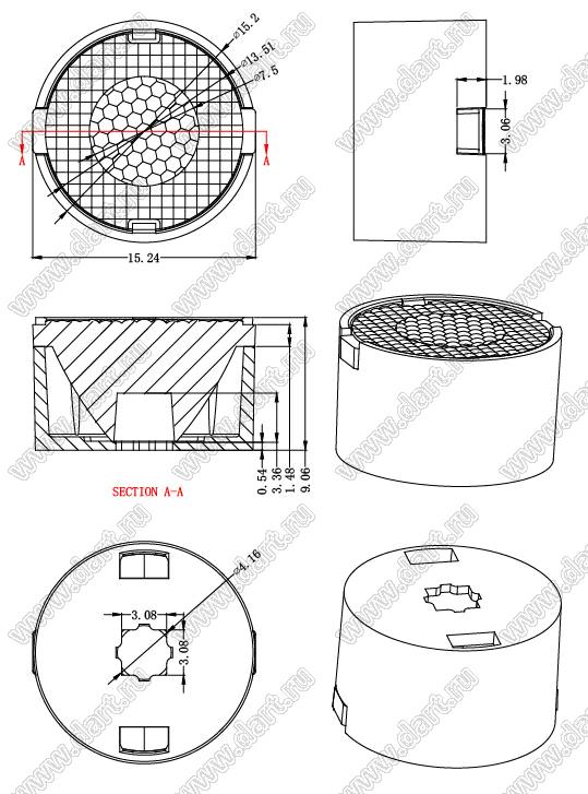 ILENS26-S14-1820-H-67M2-3030 линза для светодиода; D15,20*9,06мм; 18*20°; PMMA   ILENS26-S14-1820-H-67M2-3030