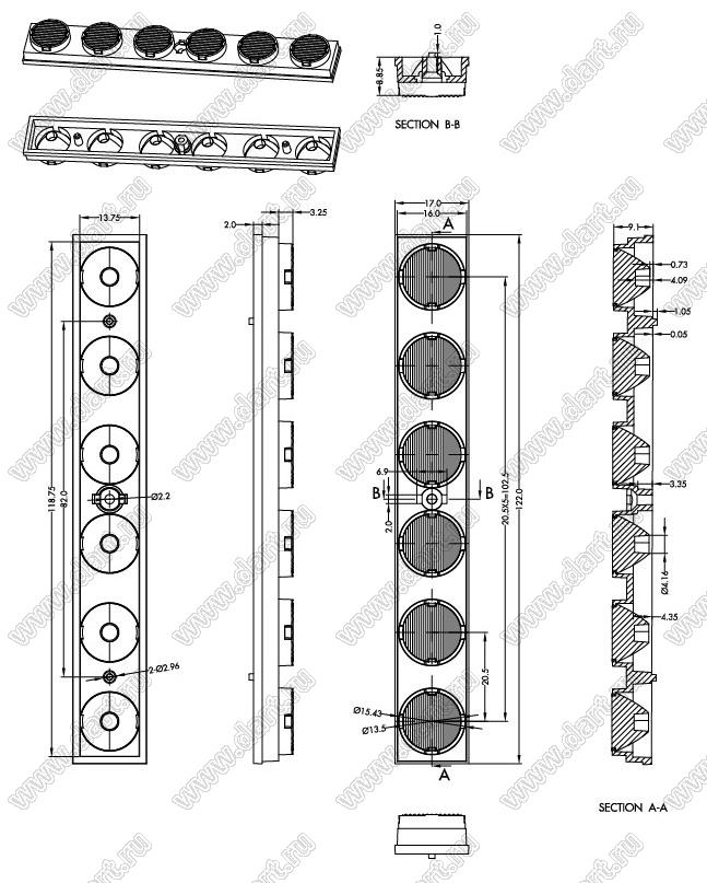 линза для светодиода; 112,00*17,00*8,85мм; 20*55°; PMMA