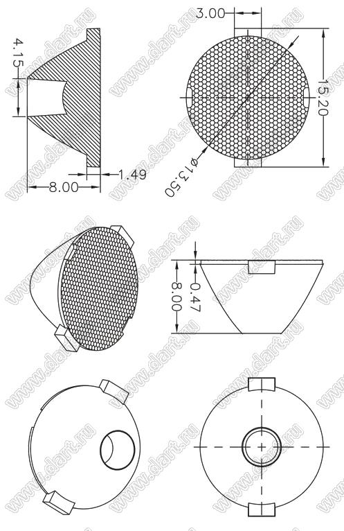 линза для светодиода; D13,5*8,0мм; 25°; PMMA