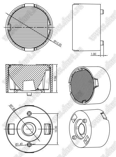 линза для светодиода; D15,20*10,06мм; Asymmetric 10*65°; PMMA