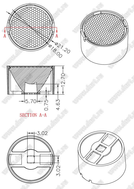 Каталог > Оптоэлектроника и индикация > Линзы и рефлекторы для светодиодов > Прочее > ILENS28-S20-B40-H-02M2