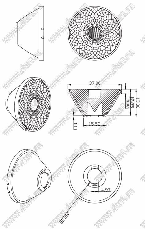 линза для светодиода; D37*19мм; 8°; PMMA