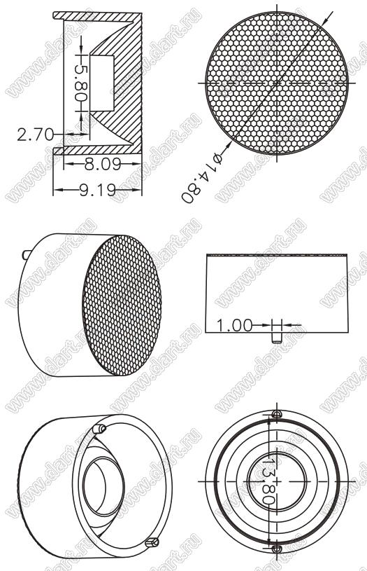 ILENS30-S15-65-NH линза для светодиода; D14,8*9,19мм; 65°; PMMA   ILENS30-S15-65-NH